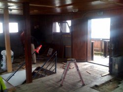 Ça y est, les travaux ont débutés à la patoche, et le moins que l’on puisse dire c’est que ça change ! Le local de location de patins, une partie du plancher et les murs de la montée d’escalier ont été virés. C’est bientôt à nous de jouer !!!