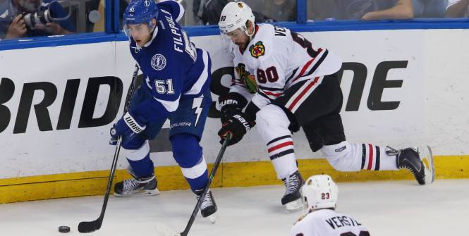 Les Chicago Blackhawks l'ont emporté à Tampa Bay (2-1),se donnant la possibilité d'être titrés dès lundi à domicile.