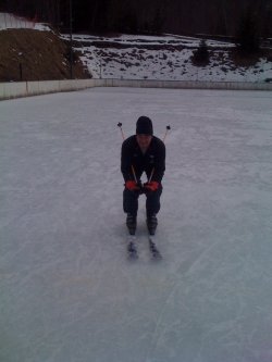 Des pentes abruptes du Tourchet à la patinoire il n'y a qu'un pas et le vieux mollusque en a fait les frais. Impossible de l'arrêter, il a fini sur le glaçon. Arrête de faire le con et remet les patins !