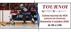 Dimanche 3 octobre aura lieu le 11ème tournoi du HCH à la patinoire de Chamonix. Les Boutchs devront défendre leur titre contres les équipes suisses de St-Cergue et Champéry, mais également Les Gypaètes, Les Potes et le HCH.
