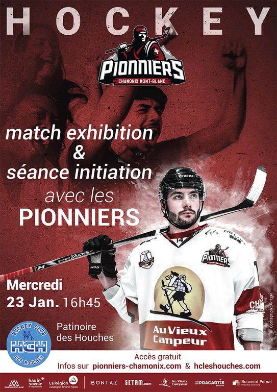 Dans le cadre du programme d’animation Intercommunal, Les Pionniers de Chamonix évoluant dans le championnat Elite du Hockey sur Glace français en partenariat avec le Hockey Club Les Houches proposent d’animer deux soirées sur la patinoire des Houches.