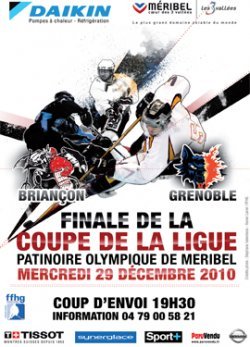 Méribel accueillera mercredi 29 décembre 2010 la finale de la Coupe de la Ligue. L’affiche de la rencontre opposera Grenoble à Briançon et sera retransmise sur Sport + DIFFUSIONS SUR SPORT + - En direct à 19H30
