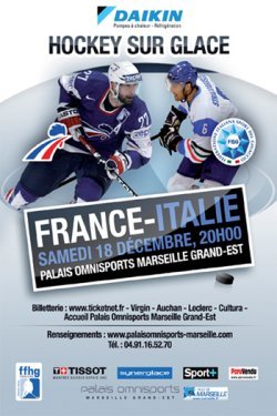 Samedi 18 décembre à 20H00, l’équipe de France de Hockey sur glace affrontera l’Italie au Palais Omnisports Marseille Grand-Est.