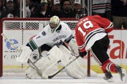 Jonathan Toews, Patrick Sharp et Patrick Kane ont marqué lors des trois premières rondes de la fusillade et les Blackhawks de Chicago ont battu les Canucks de Vancouver 2-1, mercredi, ce qui a prolongé la séquence de victoires des champions de la Coupe Stanley à quatre.