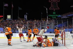 Au sein de l’habituel antre des Phillies, les New York Rangers ont réussi l'exploit de battre les Flyers, qui évoluait pourtant à domicile. Menés 0-2 à cinq minutes de la fin du deuxième tiers-temps sur des buts de Schenn et Giroux, les New-yorkais l'ont finalement emporté 3-2 grâce à un doublé de Rupp, un troisième but de Richards et 34 arrêts de Lundqvist, auteur par ailleurs d'une parade décisive à 20 secondes de la fin sur un penalty de Brière.