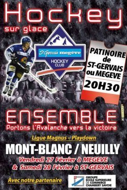 Notre hockey va mal, après Chamonix (2 années de suite) c'est au tour de notre voisin, le HC Mont-Blanc de jouer son avenir dans l'élite française face à Neuilly sur Marne tout jeune promus.