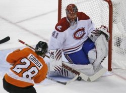 Philadelphie a écrasé Montréal, dimanche, lors du match 1 de la finale de Conférence Est (6-0). Les Flyers, qui ont décroché leur place en play-offs lors de la dernière journée de la saison régulière, ont pu compter sur un bon Michael Leighton, auteur de 28 arrêts, et, surtout, sur son homogénéité (6 buteurs différents avec Braydon Coburn, James Van Riemsdyk, Danny Briere, Simon Gagne, Scott Hartnell et Claude Giroux) pour prendre les devants.